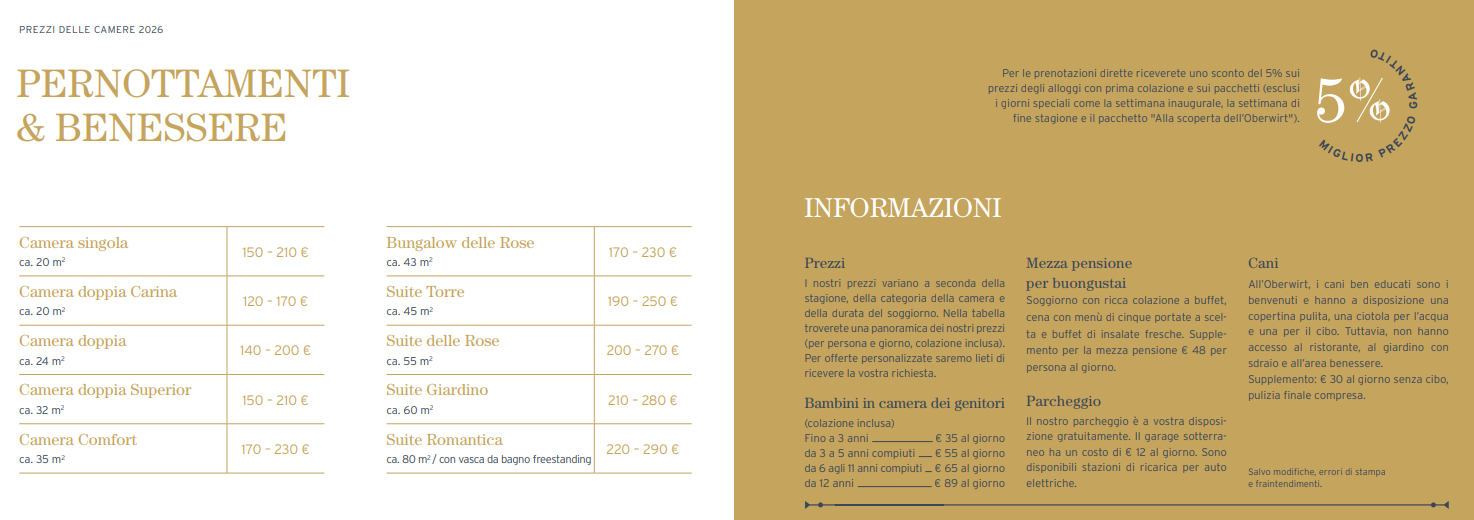 Sfogliando le nostre brochure e i nuovi cataloghi, potete prepararvi a trascorrere una vacanza all’insegna dei piaceri della vita al Romantik Hotel Oberwirt.